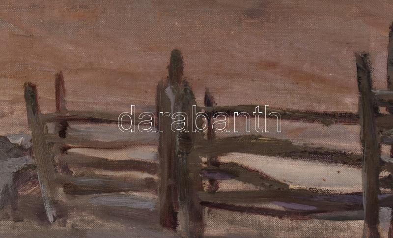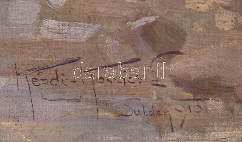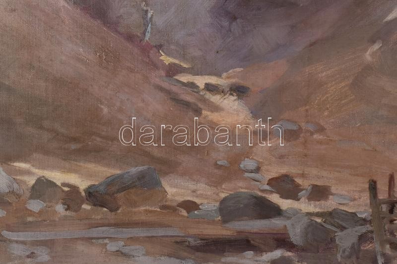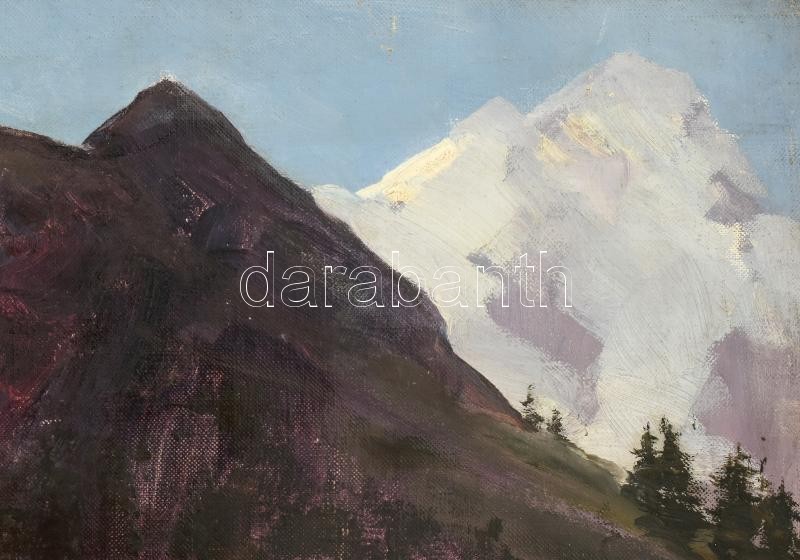 Kézdi-Kovács László (1864-1942): Az Ortler havasai Suldennél, 1910. Olaj, vászon. Jelzett és datált. Hátoldalán Kézdi-Kovács László autográf feliratával és Műcsarnoki kiállítási raglappal 1910/11-ből. Proveniencia: Kézdi-Kovács László fia, Kézdi-Kovács Elemér (1898-1976) gyűjteményében, majd hagyatékában. 71x101 cm / László Kézdi Kovács (1864-1942): Ortler/Orties from Sulden (now South Tyrol/Italy), 1910. Oil on canvas. Signed and dated. With exhibition label and the artist's autograph description on the reverse. 71x101 cm