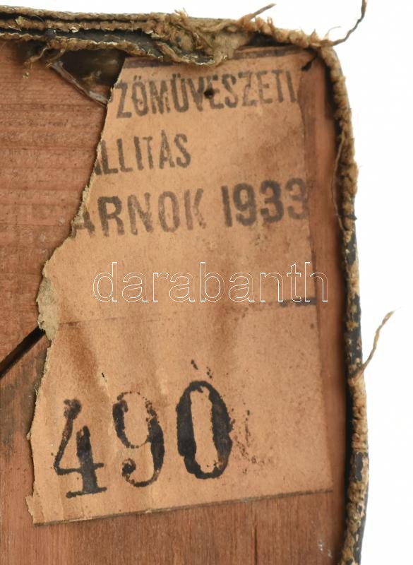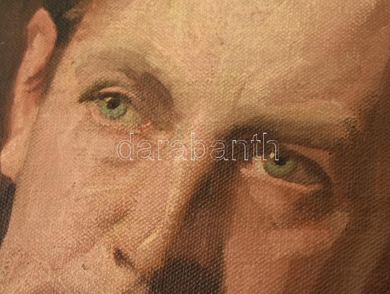 Kukán Géza (1890-1936): Sárdy Brutus festő, restaurátor arcképe, 1931. Olaj, vászon, jelzett. Hátoldalán Képzőművészeti kiállítás Műcsarnok 1933 valamint 1931/32 műcsarnoki raglappal. Bal szélén kisebb felületi sérülésekkel. 80×60 cm. / Géza Kukán (1890-1936): Portrait of painter Brutus Sárdy, 1931. Oil on canvas, signed. With two exhibition labels on the reverse. With small damages on the left edge. 80×60 cm.