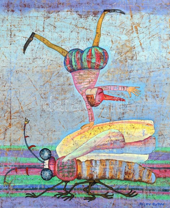Pálfy István "Putyu" (1955-): Vándorcirkusz. Olaj, vászon, j...