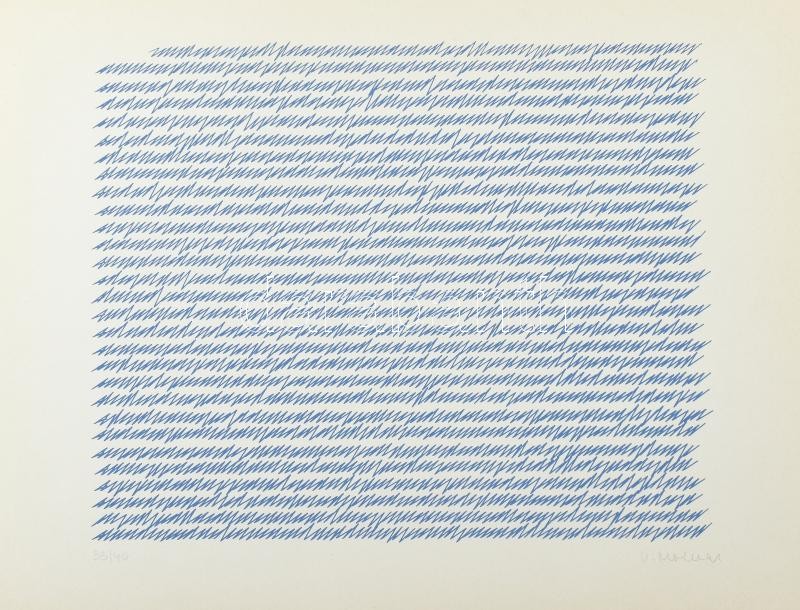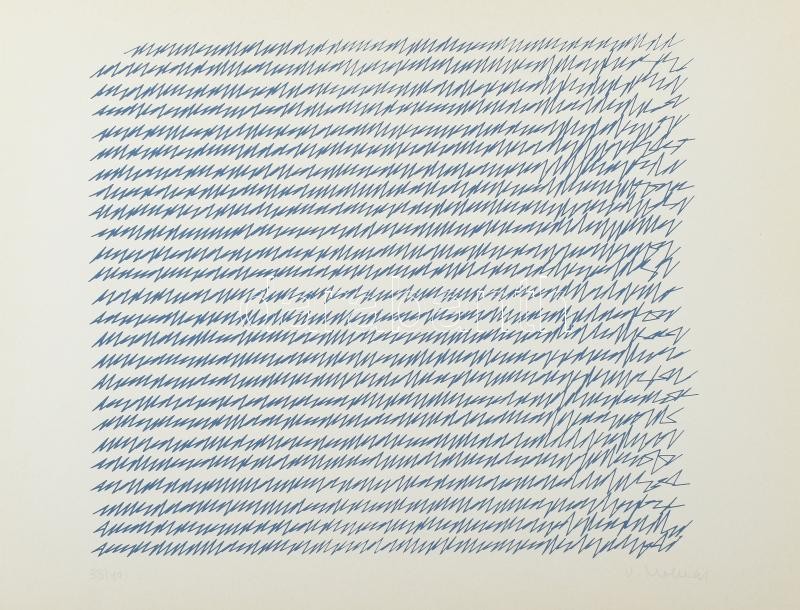 Vera Molnár (1924-): Anyám levelei I-VI. Szitanyomat, papír. Jelezve balra lent laponként: 33/40 Jelezve jobbra lent: V. Molnár. Bp., 1990, Vasarely Múzeum. Laponként 31×35,5 cm. Kiadói karton mappában. Hiánytalan, gyűjtői darab!