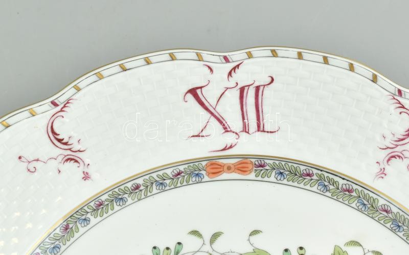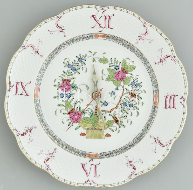 Herendi Fleur de Indes (india kosaras) mintás porcelán falióra. Kézzel festett, jelzett, hibátlan. Működik. d: 28 cm.