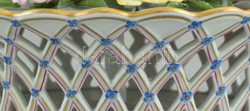 Herendi virágkosár asztalközép. Kézzel festett porcelán. Jelzett. Sérü...