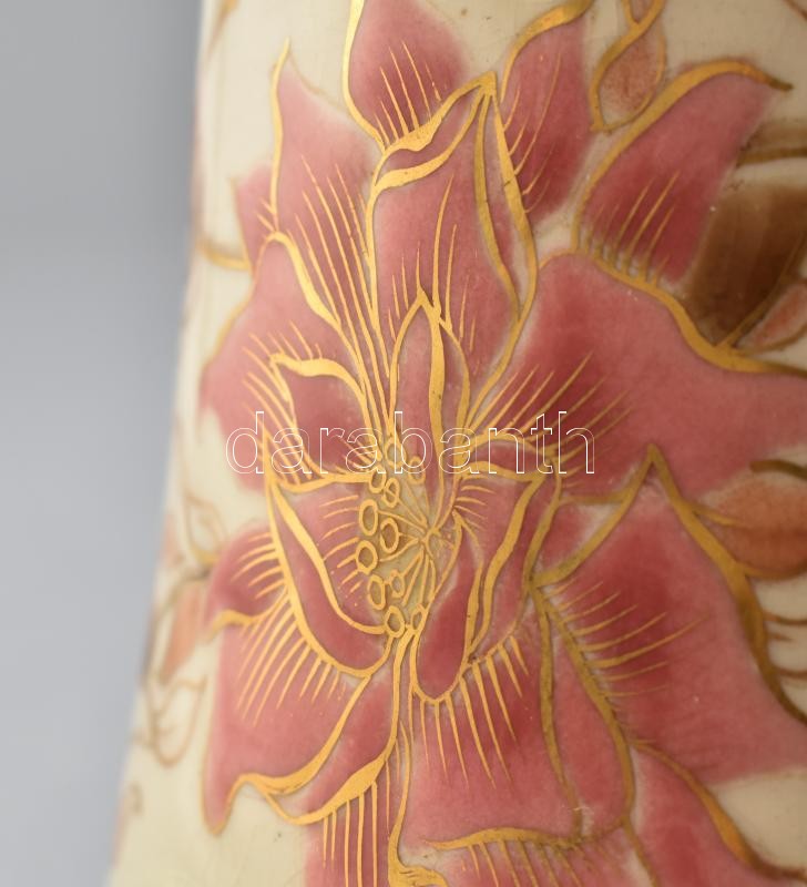 Korának megfelelő kopott aranyozás és mázrepedésekkel.