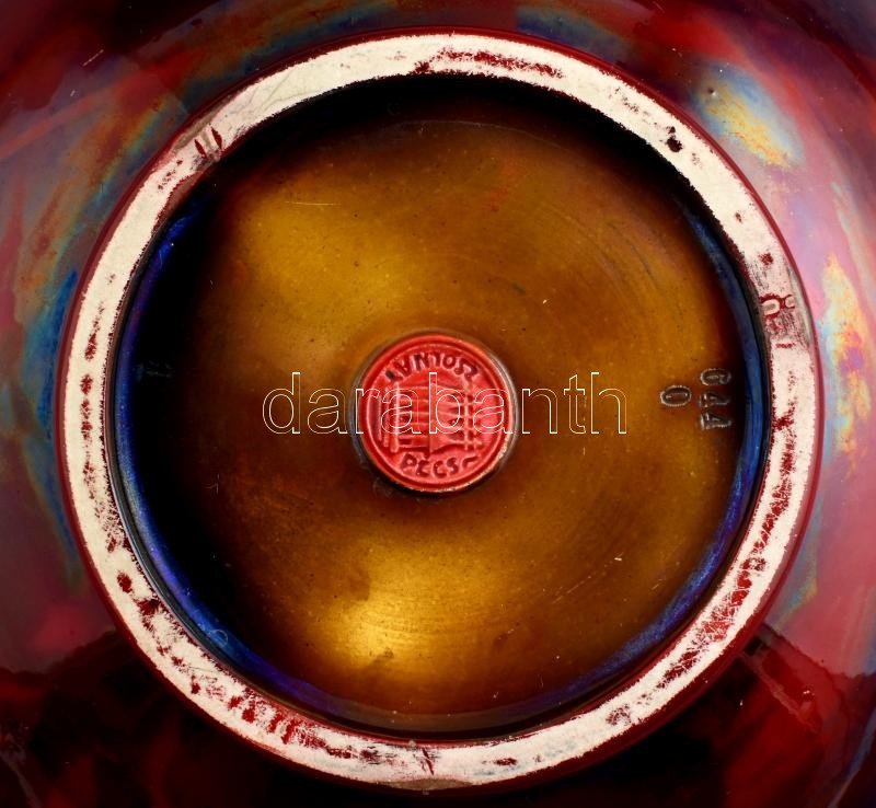Alján Zsolnay öttornyú körpecsétes jelzés, (hajszál repedt, kopott) m:17cm, d:27cm
