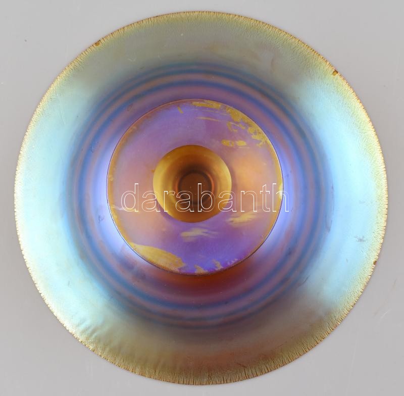 Art Deco dísztál. Fúvott üveg, bordázott felületén irizáló díszítmény.... https://www.darabanth.com/en/36-Major-auction/36.1/Porcelain-ceramics-glassware/Glass-objects~15141/Art-Deco-disztal-Fuvott-uveg-bordazott-feluleten-irizalo-diszitmeny-Jelzes-nelkul~II2485487