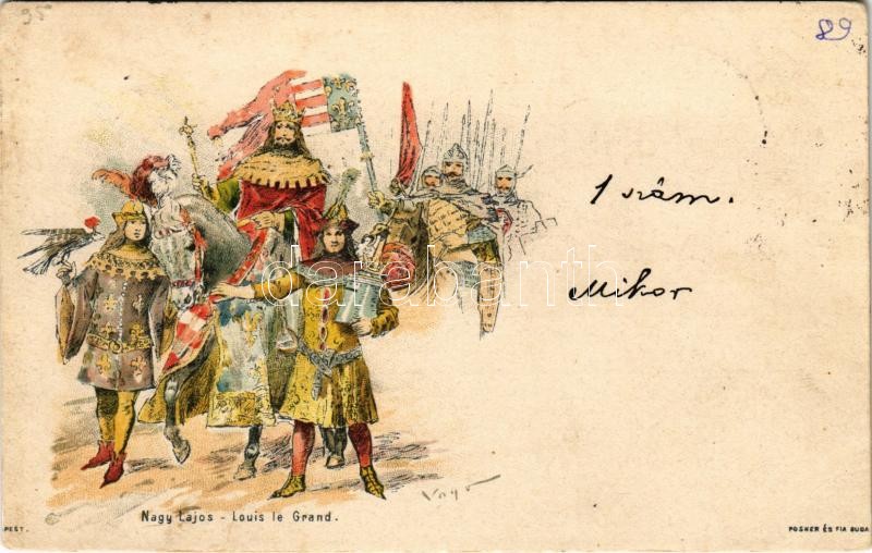1897 (Vorläufer!) Nagy Lajos. Ezredéves Országos Kiállítás / Louis I of Hungary. Hungarian Millennium Exhibition art postcard. barna 2 Kr. Ga. litho (EK)