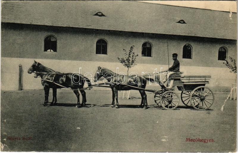 1912 Mezőhegyes, Négyes fogat. Mosonyi Károly kiadása (szakadás / tear)