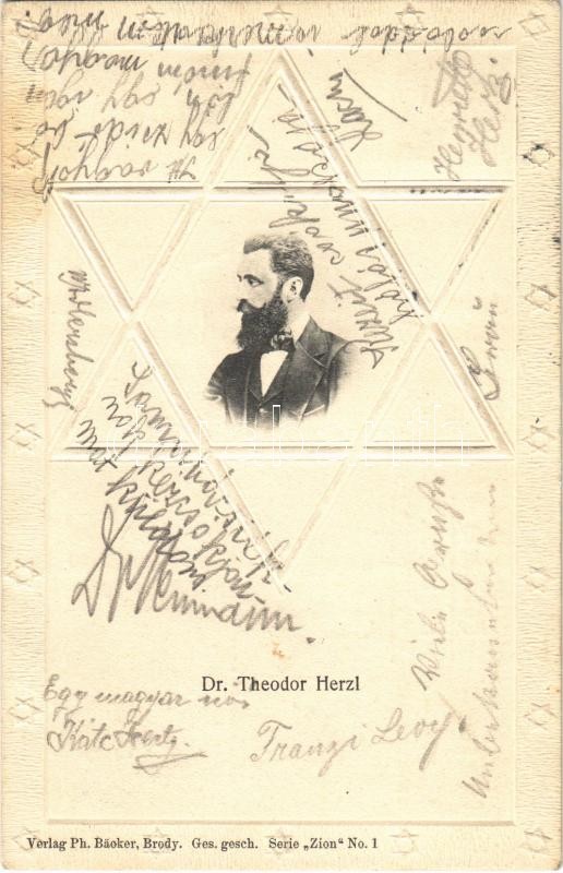 1907 Dr. Herzl Tivadar, a cionizmus megalapítója, dombornyomott / Dr. ... https://www.darabanth.com/en/36-Major-auction/36.1/Postcards/Judaica~15492/1907-Dr-Herzl-Tivadar-a-cionizmus-megalapitoja-dombornyomott-Dr-Theodor-Herzl-father-of-mod~II2491954