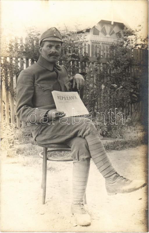 1918 Budapest IV. Újpest, magyar katona a Népszava újsággal / Hungaria...