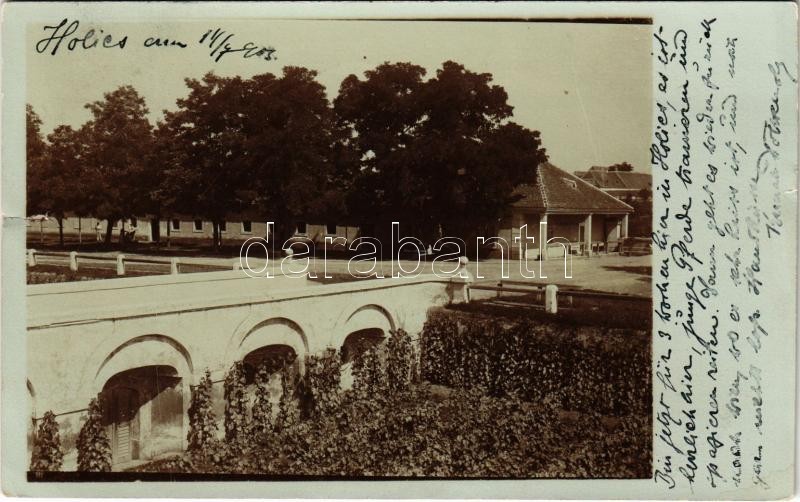 1903 Holics, Holic; szőlőskert és borospince, híd / vineyards and wine cellar, bridge. photo (szakadás / tear)