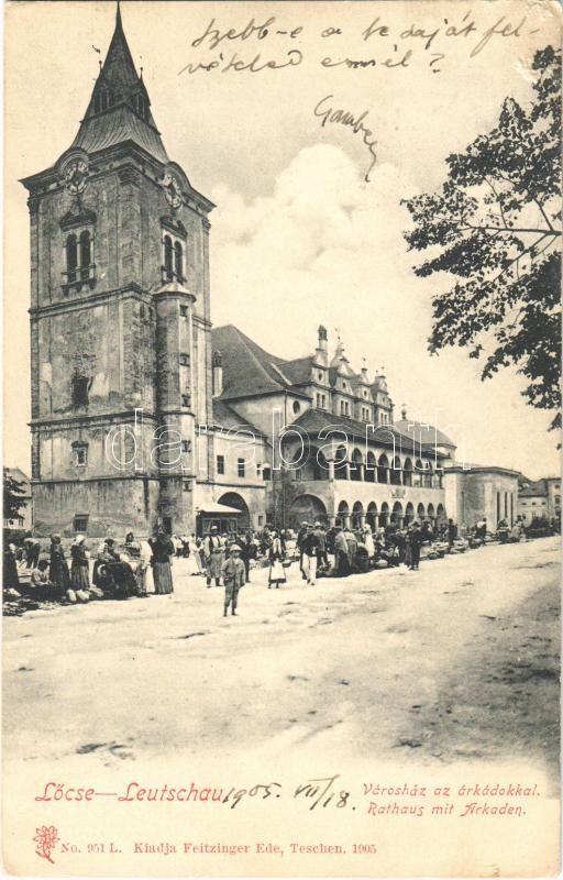 1905 Lőcse, Levoca, Leutschau; Városház és árkádok, piac. Feitzinger Ede No. 951. L. 1905 / town hall, market (EK)