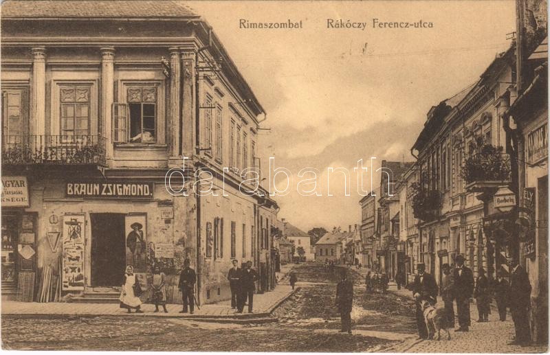 https://www.darabanth.com/en/36-Major-auction/36.1/Postcards/Slovakia~15419/1918-Rimaszombat-Rimavska-Sobota-Rakoczy-Ferenc-utca-Braun-Zsigmond-es-Majoros-J-borbely-u~II2491106
