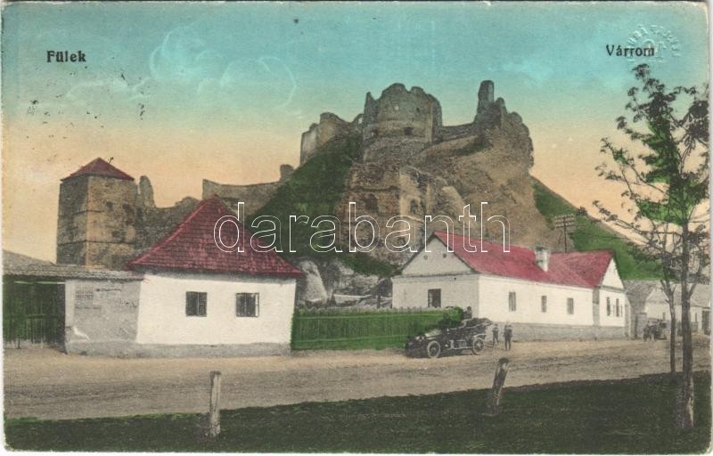 Fülek, Filakovo; várrom, utca, automobil. Vasúti levelezőlapárusítás 7...