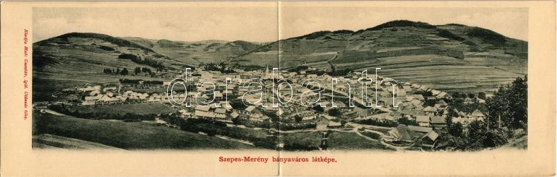 Merény, Szepesmerény, Nálepkovo; Matz Gusztáv kiadása, két részes kinyitható panorámalap / 2-tiled folding panoramacard