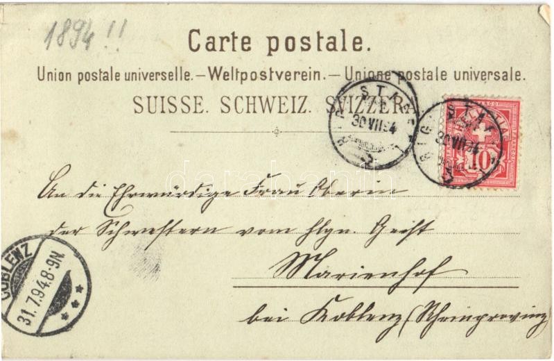 1894 (Vorläufer) Rigi Kaltbad, Hotel & Pension J. Würth, Art Nouveau