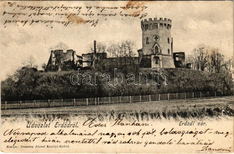 1905 Erdőd, Károlyierdőd, Ardud (Szatmár); Erdődvár, Rákóczi vár, Petőfi torony. Demeter József kiadása / Cetatea Ardud (Castelul Károlyi) / castle, tower (EK)