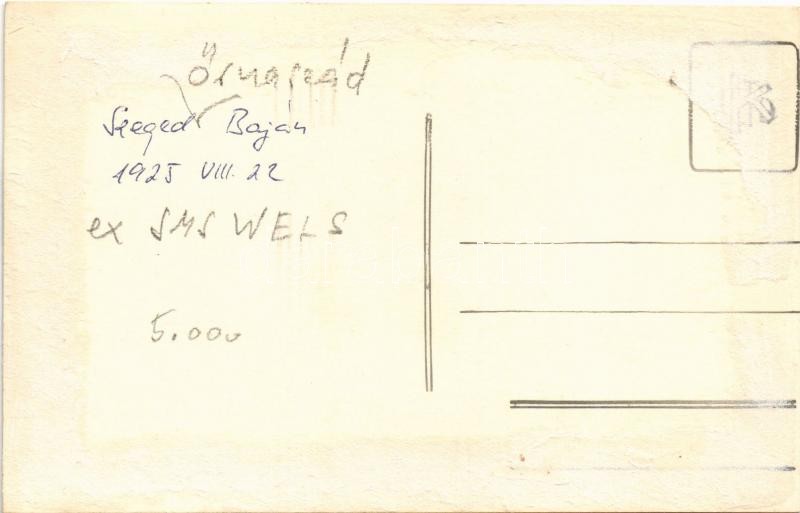 1925 Baja, Magyar Királyi Folyamőrség "SZEGED" (ex SMS Wels)... https://www.darabanth.com/en/36-Major-auction/36.1/Postcards/Warship~15487/1925-Baja-Magyar-Kiralyi-Folyamorseg-SZEGED-ex-SMS-Wels-ornaszadja-a-kikotoben-csonakC3~II2480220