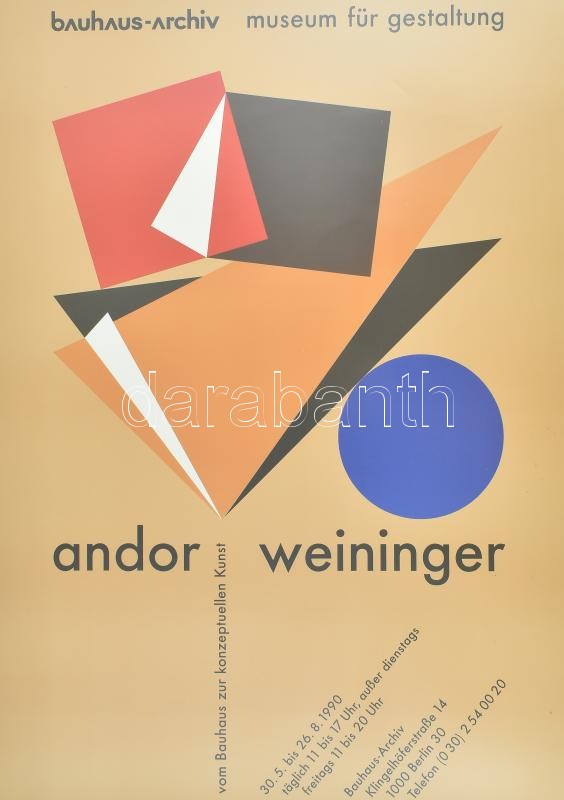 1990 Weininger Andor, vom Bauhaus zur konzeptionellen Kunst, Bauhaus-A... https://www.darabanth.com/en/36-Major-auction/36.1/Poster/Poster~15159/1990-Weininger-Andor-vom-Bauhaus-zur-konzeptionellen-Kunst-Bauhaus-Archiv-Museum-fur-Gestaltung-~II2479910