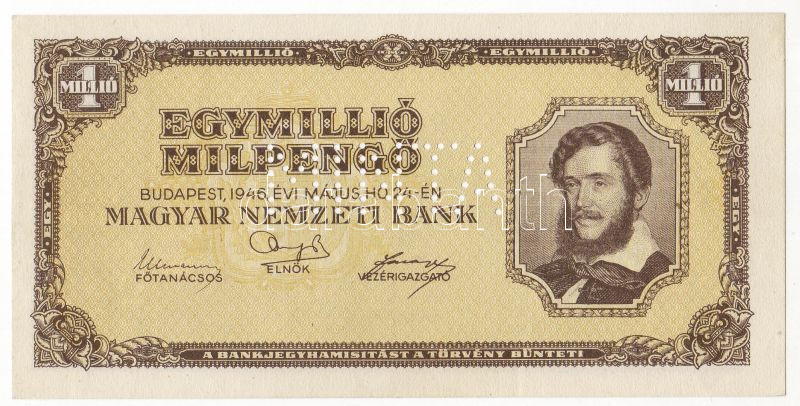 1946. 1000.000Milpengő "MINTA" lyukasztással T:I-