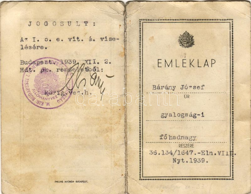 https://www.darabanth.com/en/36-Online-auction/36.0/Numismatics/~82/1939-Emleklap-fenykepes-amely-egyenruha-es-I-oszt-ezust-vitezsegi-erem-viselesere-jo~II70460