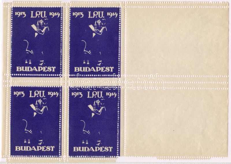 1913 IPU levélzáró hiányos keretű négyes kisív