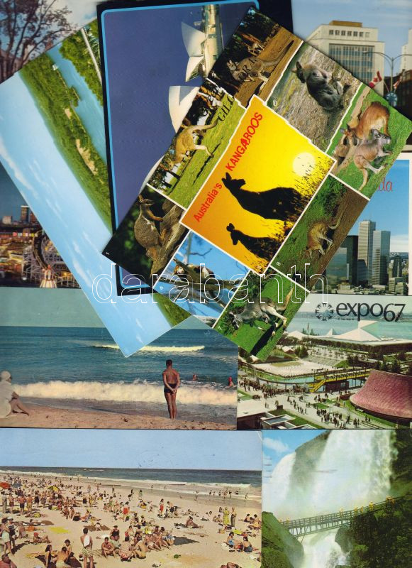 23db ausztrál, kanada, új-zélandi modern városképes és állatos lap, kö...