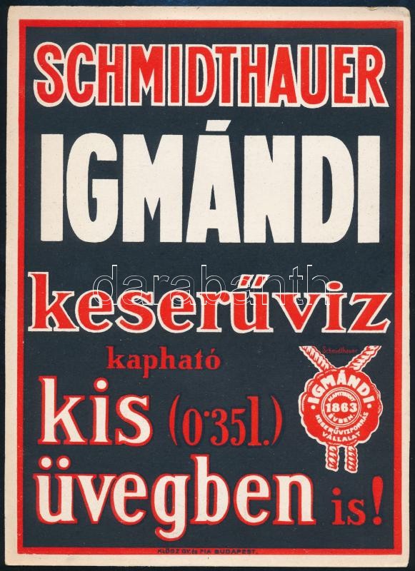 Schmidthauer Igmándi keserűvíz kisplakát, 24×17 cm