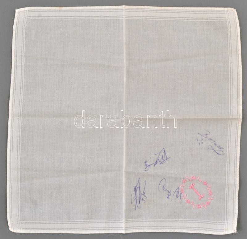 Magyar focisták aláírása egy hímzett zsebkendőn