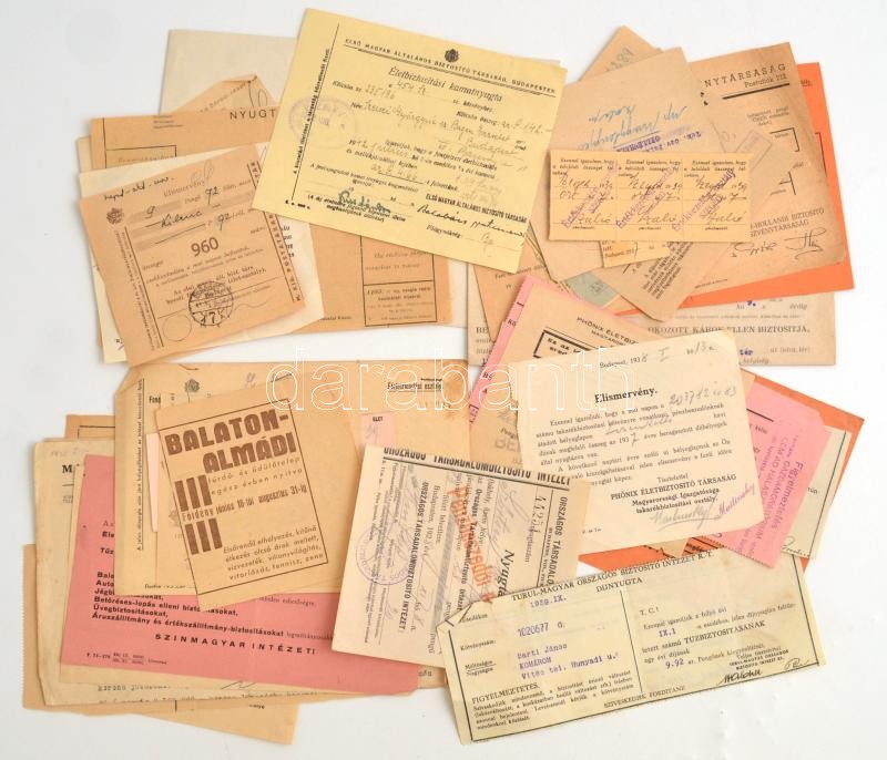 1928-1943 Vegyes biztosítási papír és nyugta tétel, kb. 30 db