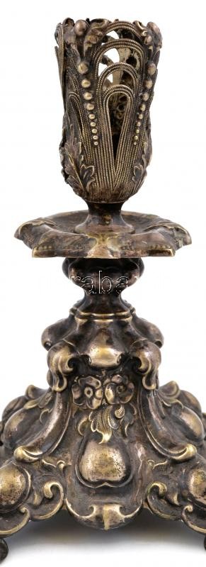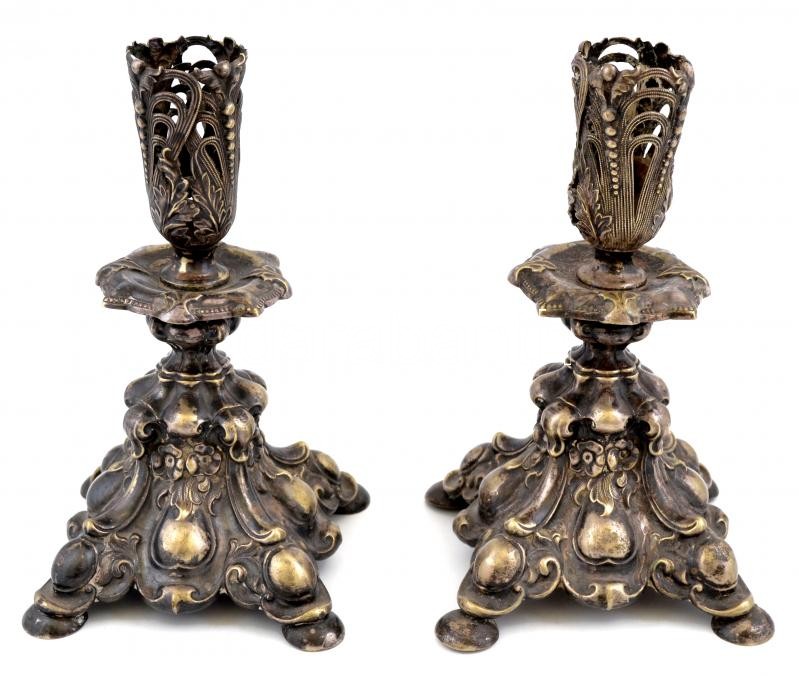 2 db régi fém gyertyatartó Henninger üzeméből, jelzett, kopásokkal, m:...