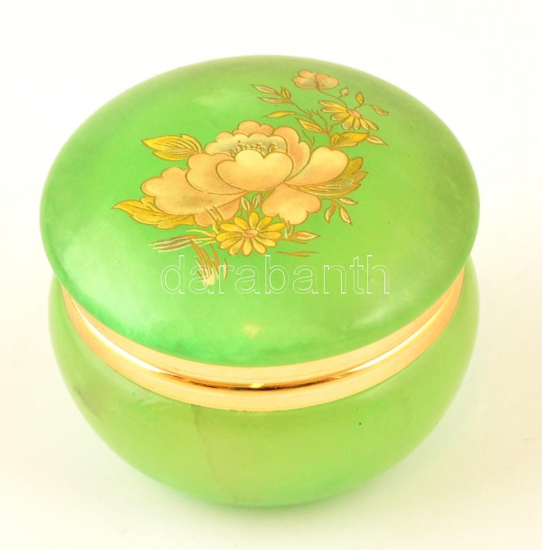 Virágmintás alabástrom tégely, d: 6,5 cm