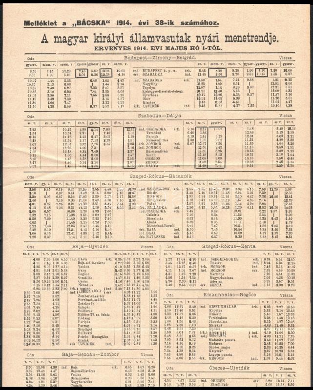 1914 MÁV nyári menetrendje a Budapest-Zimony-Belgrád vonalon