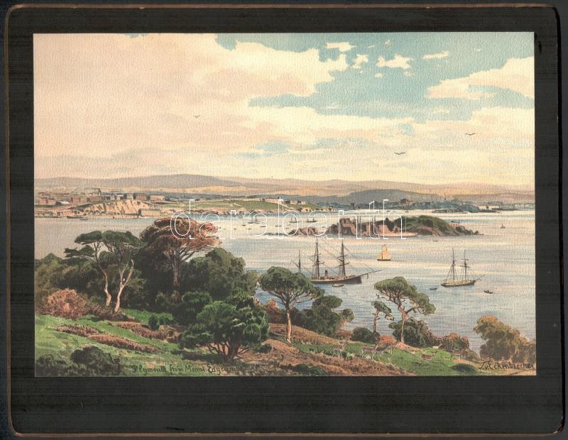 cca 1880 Von der englischen Küste Aquarell-Facsimile, Verlag: Artistische Anstalt Gustav W. Seitz, 18×25 cm