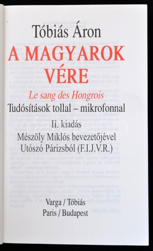 Tóbiás Áron: A magyarok vére. Le sang des Hongrois. Tudósítások tollal, mikrofonnal. Bp., 2007. Szerzői. Kiadói papírkötés