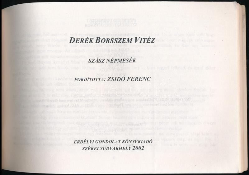 Derék borsszem vitéz. Szász népmesék. Ford.: Zsidó Ferenc. Székelyudvarhely, 2002, Erdélyi Gondolat, 88+2 p. Kiadói haránt alakú papírkötés.