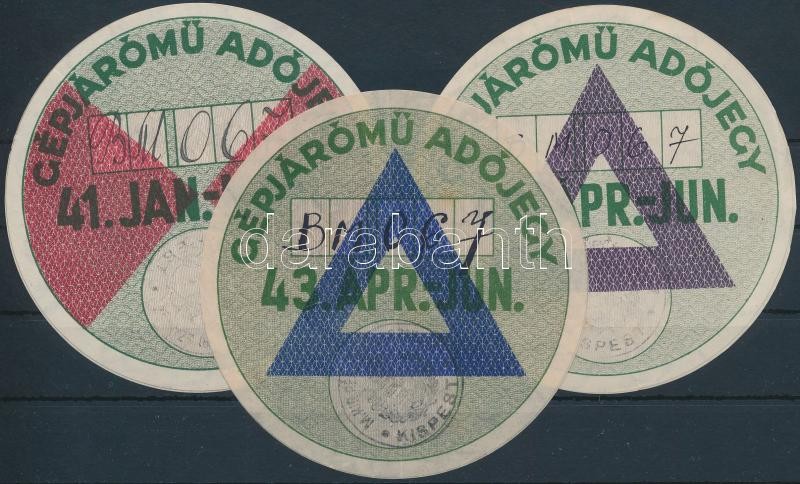 1941-1943 3 klf. kitöltött Közúti adójegy adóhivatali bélyegzéssel (48...