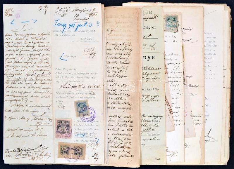 cca 1890-1925 55 db illetékbélyeges irat a Korona-fillér időszakból