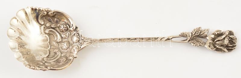 Ezüst(Ag) rózsás habos kanál, jelzett, h: 16 cm, nettó: 38 g