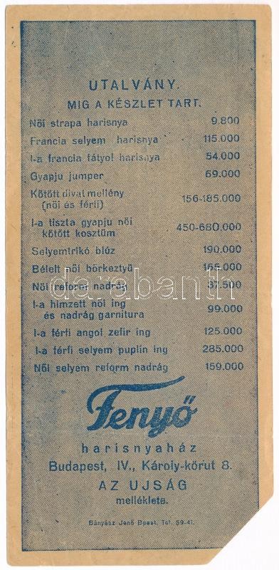 1923. "Fenyő Harisnyaház" 1.000.000K reklám-utalvány T:III