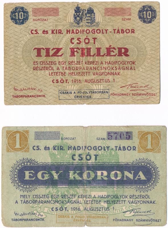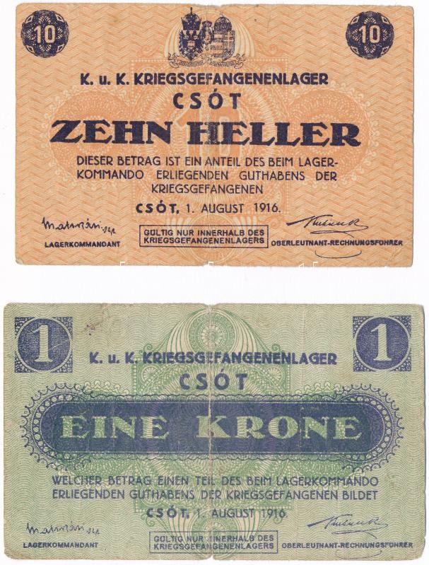https://www.darabanth.com/en/360-Online-auction/360.0/Numismatics/Emergency-Coins-and-Notes~2000006/Csot-Hadifogolytabor-1916-augusztus-1-10f-plus-1K-TIII-~II2070293