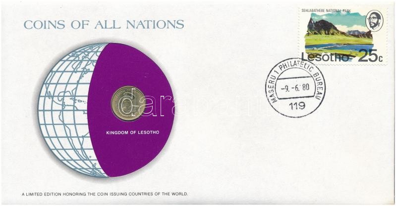 Lesotó 1979. 1s "Nemzetek pénzérméi" felbélyegzett borítékba... https://www.darabanth.com/en/360-Online-auction/360.0/Numismatics/Envelopes-with-Coins-and-Banknotes~2000004/Lesoto-1979-1s-Nemzetek-penzermei-felbelyegzett-boritekban-belyegzessel-T1-Lesotho-19~II2070738