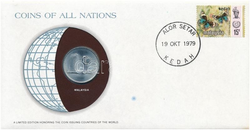 Description: Malajzia 1977. 50s "Nemzetek pénzérméi" felbélyegzett borítékban, bélyegzéssel T:1-