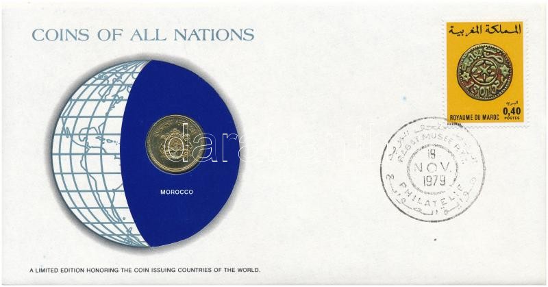 Description: Marokkó 1974. 10s "Nemzetek pénzérméi" felbélyegzett borítékban, bélyegzéssel T:1-