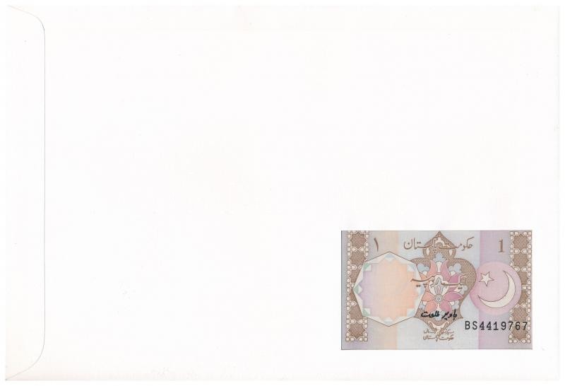 Pakistan 1981-1983. 1 Rupee in envelope with stamps and cancellations C:UNC