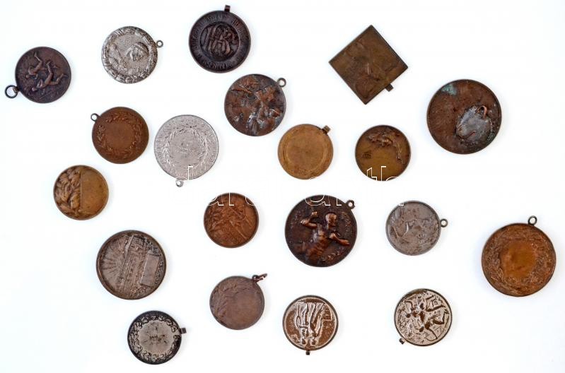 20db-os vegyes magyar sportérem tétel, főleg 1945 előtti darabok, közte "Budapest Székesfőváros Elektromosműveinek Testedző Egyesülete 1922", "Magyar Athletikai Szövetség Verseny Díja" T:2,2-