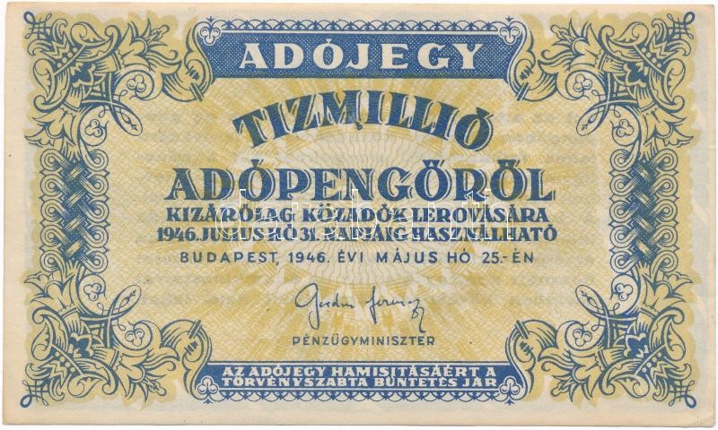 1946. 10.000.000AP sorozat- és sorszám nélkül T:I-