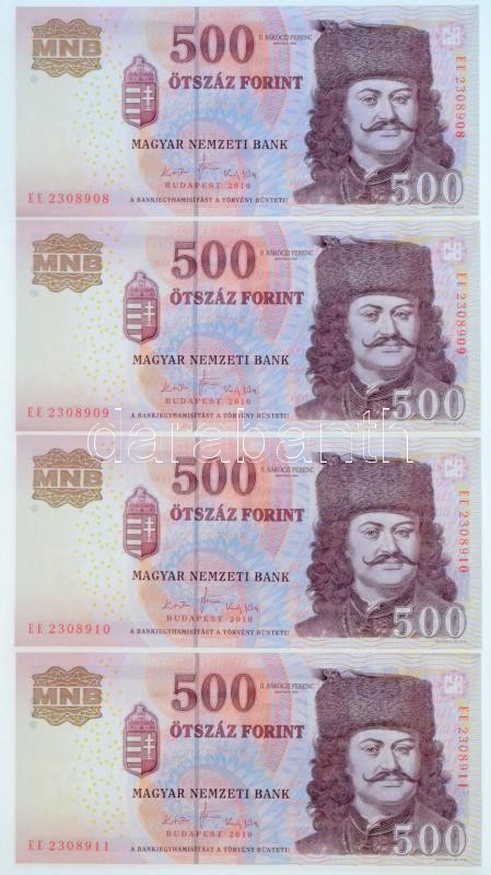 https://www.darabanth.com/en/360-Online-auction/360.0/Numismatics/Hungarian-Banknotes~2000007/2010-500Ft-EE-4x-sorszamkovetok-TI~II2070834