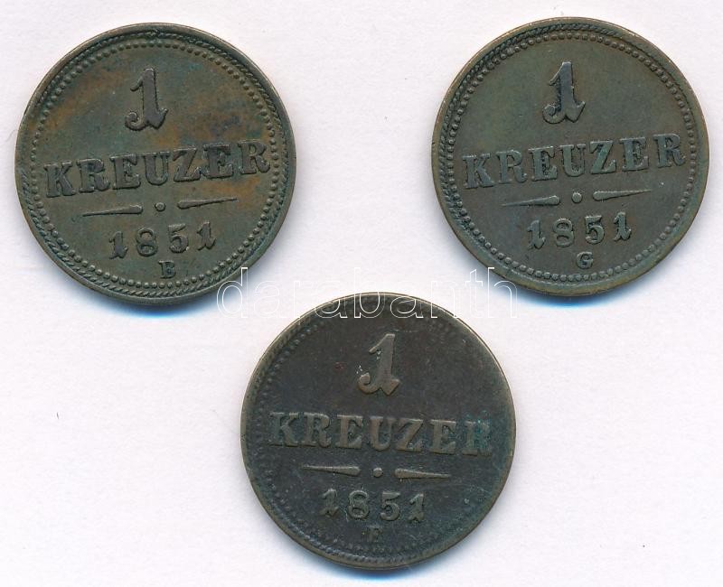 https://www.darabanth.com/en/360-Online-auction/360.0/Numismatics/Hungarian-coins-and-coins-with-Hungarian-mint-marks~2000008/1851B-1kr-Cu-plus-1851E-1kr-Cu-plus-1851G-1kr-Cu-T2-3~II2076400