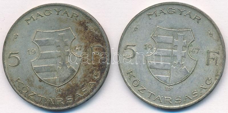 https://www.darabanth.com/en/360-Online-auction/360.0/Numismatics/Hungarian-coins-and-coins-with-Hungarian-mint-marks~2000008/1947-5Ft-Ag-Kossuth-2x-T2-2-patina-Adamo-F81~II2071896