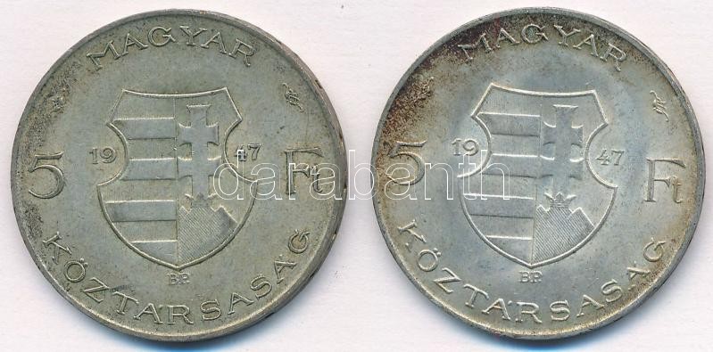https://www.darabanth.com/en/360-Online-auction/360.0/Numismatics/Hungarian-coins-and-coins-with-Hungarian-mint-marks~2000008/1947-5Ft-Ag-Kossuth-2x-T2-2-patina-Adamo-F81~II2071944